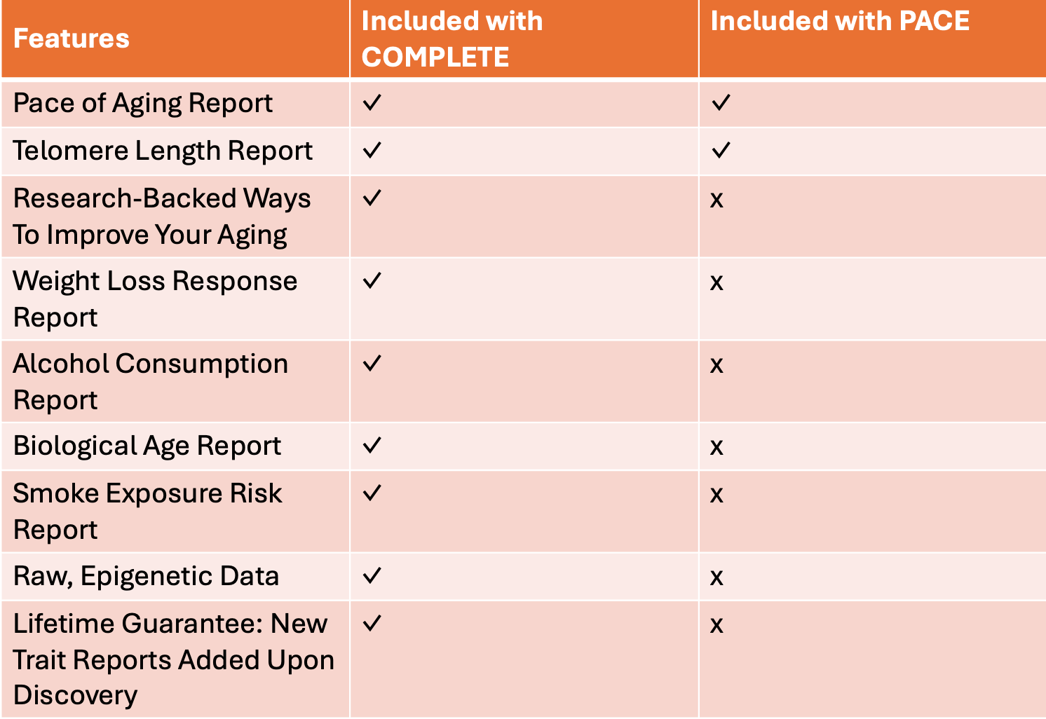TruAge COMPLETE is the go-to kit for anti-aging enthusiasts who want a comprehensive look at their baseline aging metrics, as well as in-depth analysis of specific, age-related biomarkers.